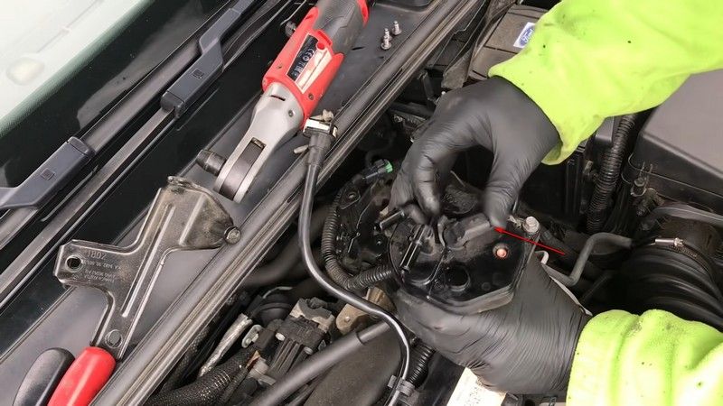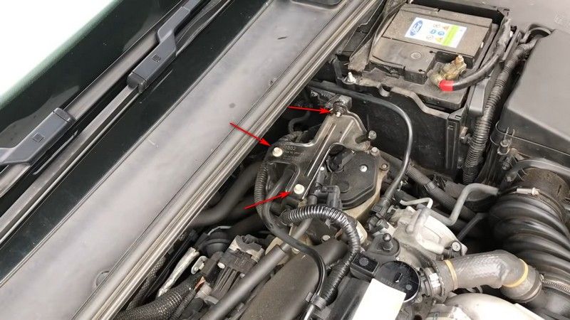 2. Топливный фильтр на Фокусе 3 1.6 расположен слева от аккумулятора. Чтобы его заменить, необходимо открутить 3 шурупа и демонтировать прижимную пластину.