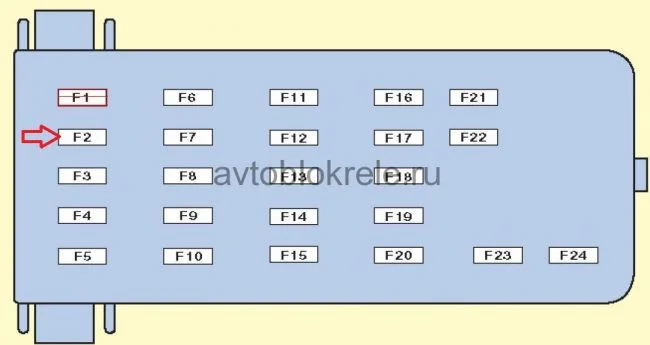 Если блок предохранителей тип 1, тогда за топливный насос отвечает предохранитель F2