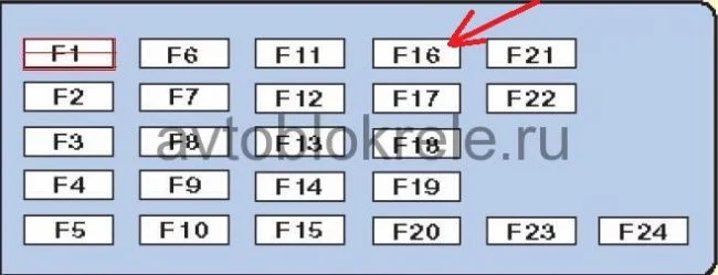 Если блок предохранителей тип 2, тогда предохранитель F16