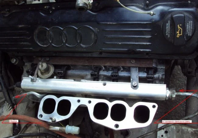 Главный топливный шланг — тот что приходит на топливную рампу к форсункам. Вот пример на фото
