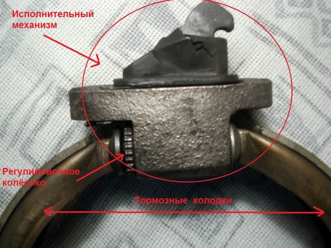 В салоне рычаг, его поднимаем, через трос в задних барабанах разводятся колодки, колёса заторможены - это схема в общих чертах. А что конкретно, что-то интересует?