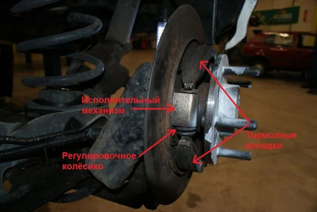 У меня трос подходит к задним барабанам, а там пусто, кроме дисковых тормозов - как это понять? Сзади основные тормоза дисковые? А внутри стояночный тормоз барабанного типа?