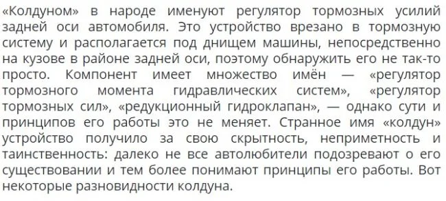 «Колдуном» в народе именуют регулятор тормозных усилий задней оси автомобиля.