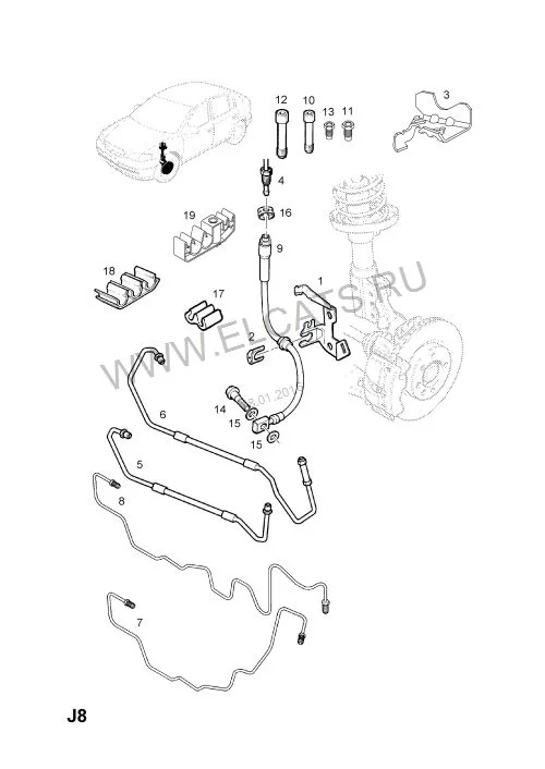 Как заменить тормозную трубку слева, спереди, Опель Астра Джи?