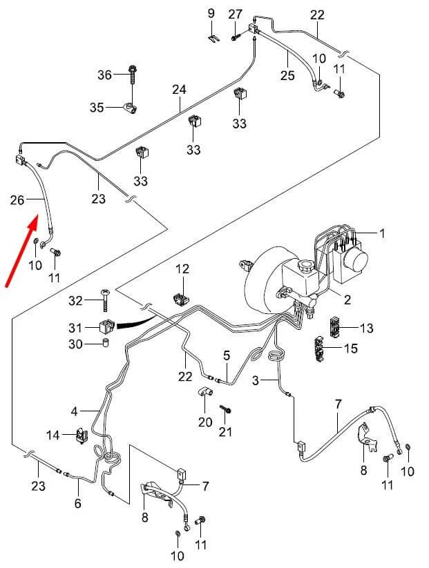 Вот тут есть информация с фото по замене тормозных шлангов и тут. Осмотрите внимательно, если все же шланг течет, то его артикул Ssang Yong 4872109002 — Шланг тормозной задний правый, он откручивается от тормозной трубки и выкручивается болт с суппорта, желательно запастись колечком (мягким, медным) для болта, который к суппорту крепится. Схема тормозной системы вашего автомобиля.
