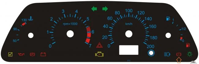 Круглая с восклицательным знаком по средине внизу под указателем топлива