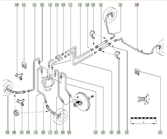 Необходимо заменить/отремонтировать подводящую трубку к заднему левому тормозному цилиндру Сценика 2.