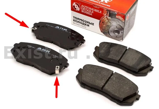 Напишите вин номер вашего автомобиля. По предварительным данным, на колодках стоит механический датчик износа (другого нет), на передних и задних колодках, пластина которая будет издавать писк при износе колодок, пискун называют некоторые, но не всегда при износе от нее есть писк. Пластина идет в сборе с колодкой, на двух есть, на двух нет, с пискуном нужно ставить с внутренней стороны авто (со стороны поршня суппорта), износ наружной колодки меньше и его как правило видно не снимая колеса.