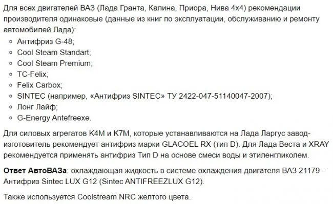 Какой антифриз заливать в Калину?