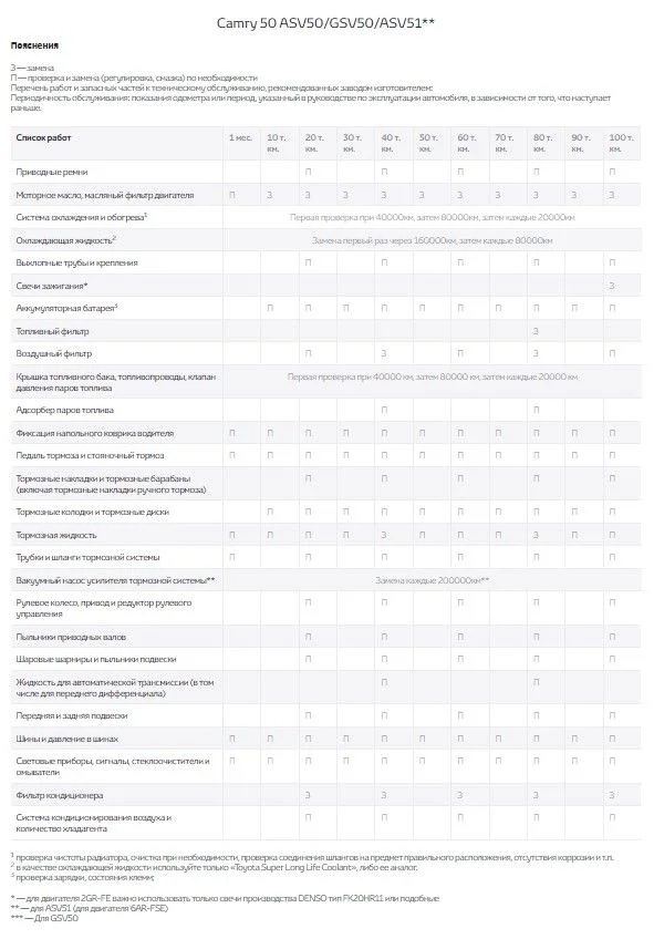 Где найти расписание ТО для Тойота Камри V 50 (2015)?