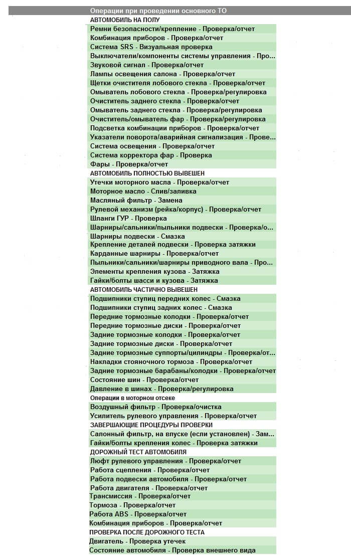Что входит в состав ТО toyota land cruiser 120?