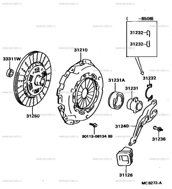 Может быть лопнула и погнулась лапа сцепления, которая на рисунке №31240, или лопается и продавливается в том месте, где упирается опорный шар №31236