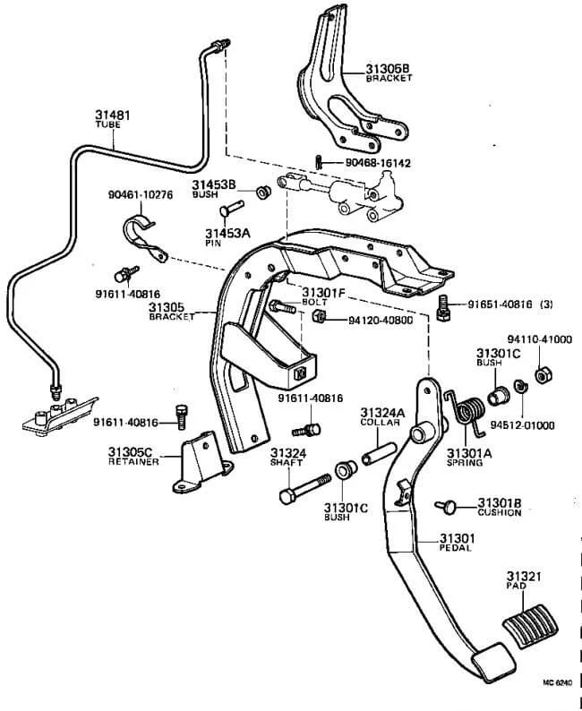 Может быть лопнула трубка и вытекла тормозная жидкость, или бывает выскочит шплинт и вылезет штифт (который здесь на рисунке №31453А).