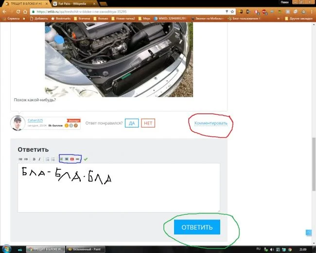 Вот я вам ответил. Вы можете вот красным обведено прокомментировать мне нажав на комментарий. Ну если вы по этой же теме захотите задать вопрос, нажимаете на ответ обведен зеленым. Бла-Бла-Бла это где писать ;-) А синим обведено это чтоб вставлять картинку, видео, ссылку. Но вставка может только в ответе работать. То что зеленым обведено.