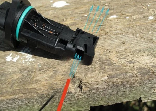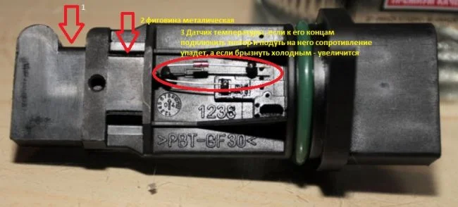 а Датчик массового расхода воздуха там как бы внутри (показано синими стрелочками поток воздуха пошёл через него)