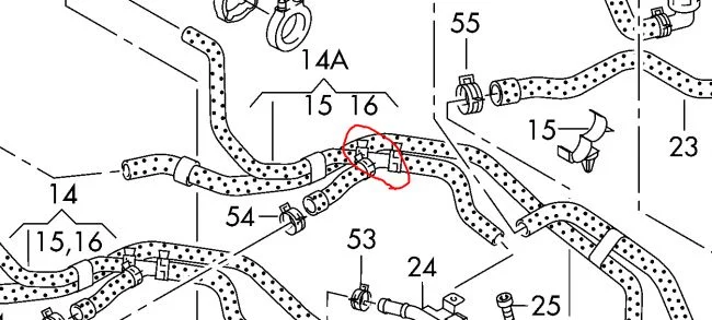 Доброго времени суток. Помогите пожалуйста найти артикул этого тройника (отмечено красным) на Audi Q7 3.6 (двигатель BHK). Может от какой-то другой машины подойдёт.