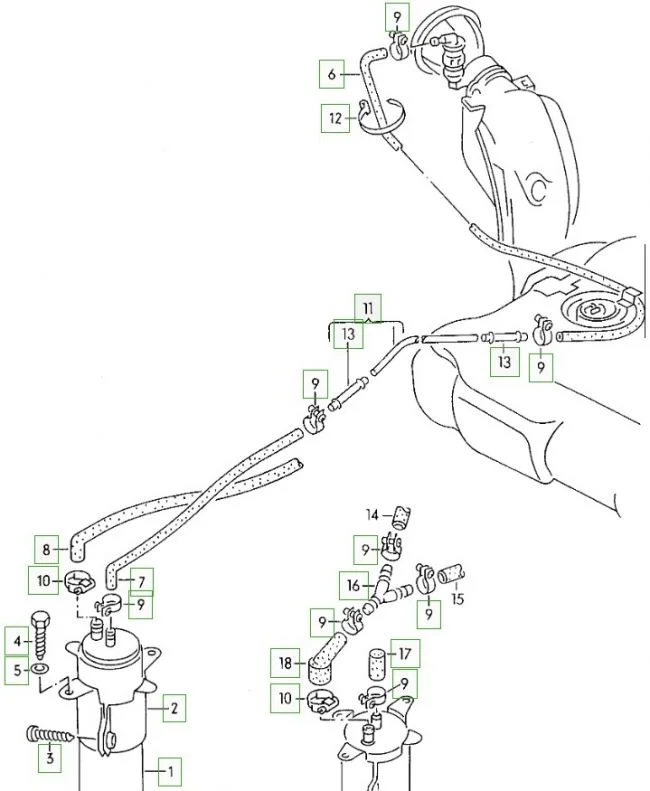 Пассат б3, 92 год, двигатель abs, универсал, wvwzzz31zne225458 В мануалах схемы есть но они так схематично нарисованы вариантов много и друг друга перекрывают, не видно какая трубка куда подходит особенно по клапанам на горловине. Мне это надо потому, что постоянно создаётся разряжение сильное, бак сжимает адсорбер поменял электро клапан то же всё норм. Мне летом варили заднюю часть как раз левые и правые арки с днищем, после снятия бака может что напутали, потому что после этого и началось.Буду благодарен если поможете кучу схем уже перекопал