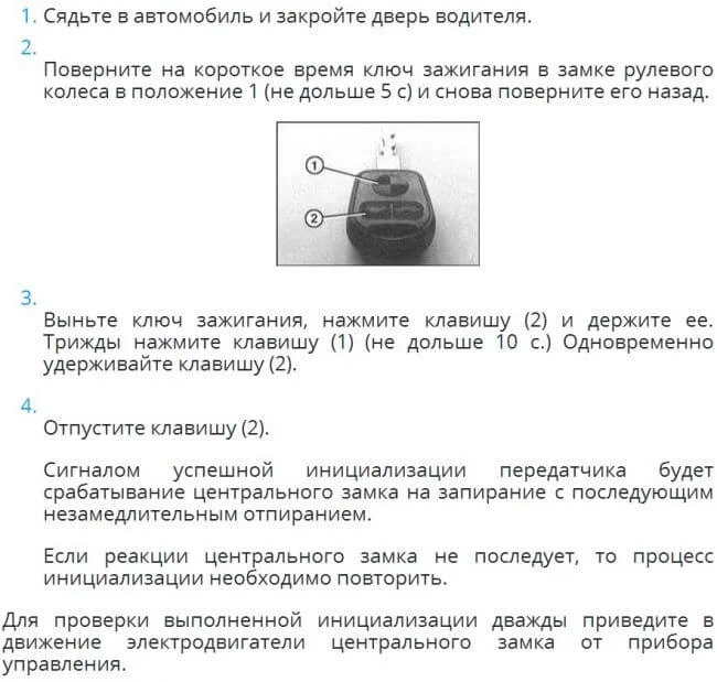 Или надо всего лишь сделать Инициализацию дистанционного управления центральным замком