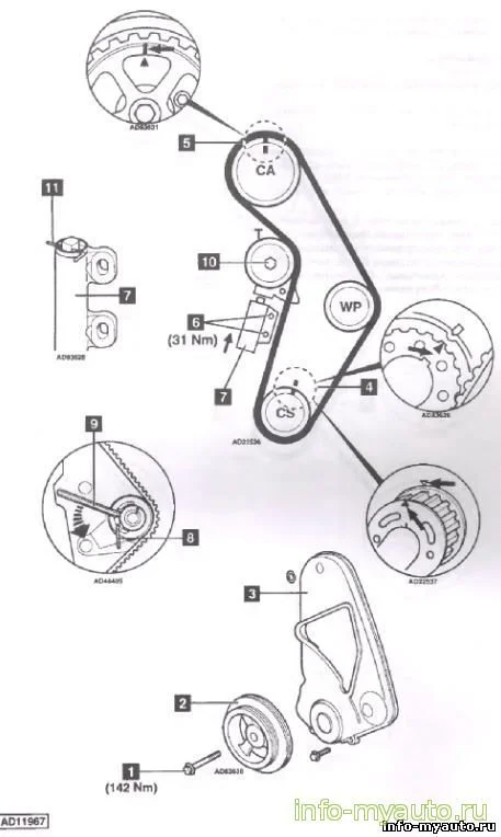 Где метки ГРМ в Крайслер Вояджер 3?