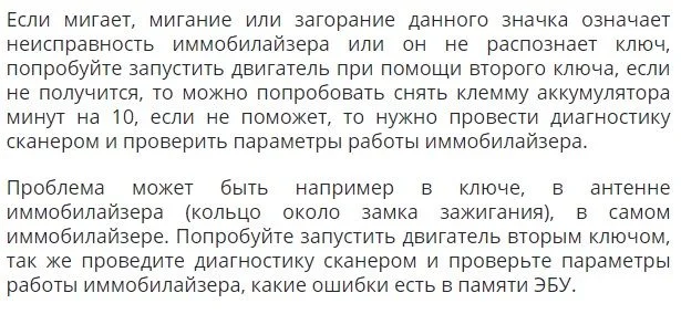При каких условиях горит значок? Машина с замком (под №10)? Если да, то ниже выдержка из руководства. Если двигатель не запускается, то это из за иммобилайзера, проведите диагностику сканером, считайте ошибки и проведите по ним проверку, так же проверьте параметры работы иммобилайзера.