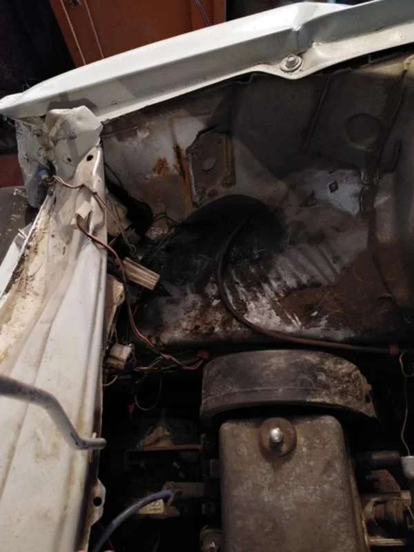 Гнутое в районе бачка омывателя вытягивается, а что делается возле стакана и под крылом — не видно. Кусок телевизора скорее всего в отрез пойдёт. Или под полную замену, в зависимости от общего состояния.