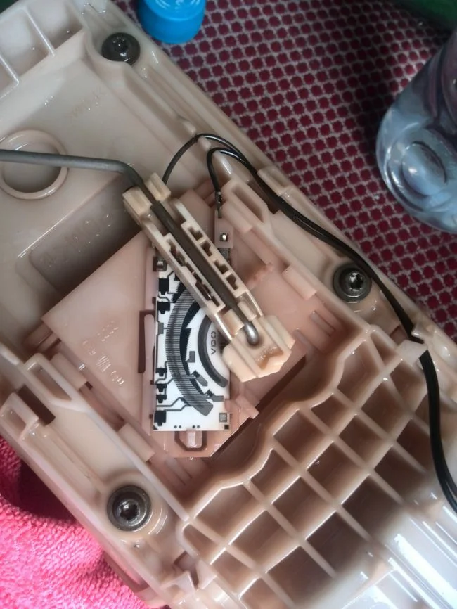 А вы ее поджимали, что бы она плотнее прижималась к плате? Тут проблема может быть или в самой плате (где дорожки) или в пластинке, которая двигается по данной плате.