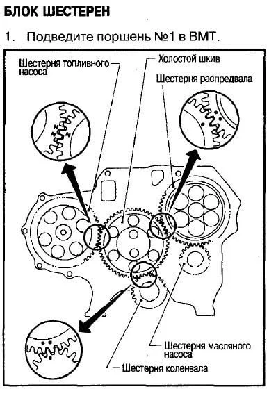 Как установить коленвал при сборке двигателя по меткам после ремонта?