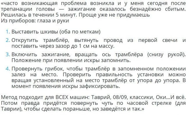 У меня Таврия 1140, как на ней выставляется зажигание?