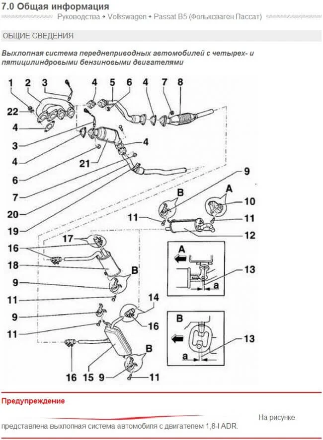 Устройство глушителя Volkswagen Passat В5