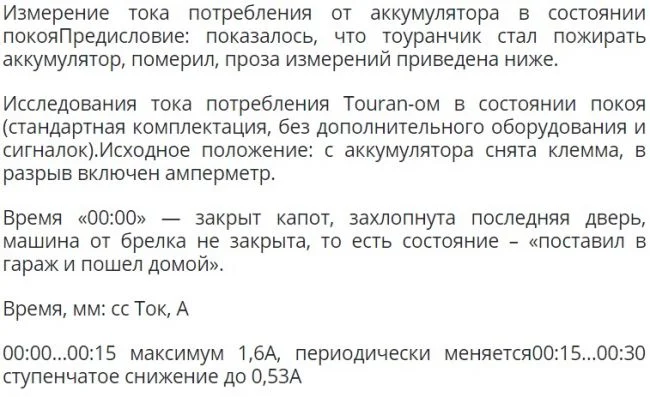 Самое интересное то, когда я измеряю ток после закрытия машины через 20-30 мин. Он равен 0,003 а, напряжение где то в пределах нормы 12,6 в. А когда измеряю напряжение через сутки, то оно становится на 0,2-0,3 в меньше, а через 3-4 дня аккумулятор уже не заводит двигатель. Заменил уже три аккумулятора. Хватает на один год. Ездил к официалам, нашли одну утечку. У меня установлено газовое оборудование. Утечка была 0,007а. Нашли в блоке ЭБУ, он был подключен постоянно. Подключили от замка зажигания стала утечка 0,003а. Один или два дня напряжение не падало, потом все повторилось как раньше. Сейчас проверяю падение напряжения на 1 и 2 подкапотном предохранителе 20а и 5а соответственно. Еще сложность в том что в интернете не могу найти наименование предохранителей и что они защищают на моем автомобиле. Автомобиль Фольксваген Гольф Вариант универсал