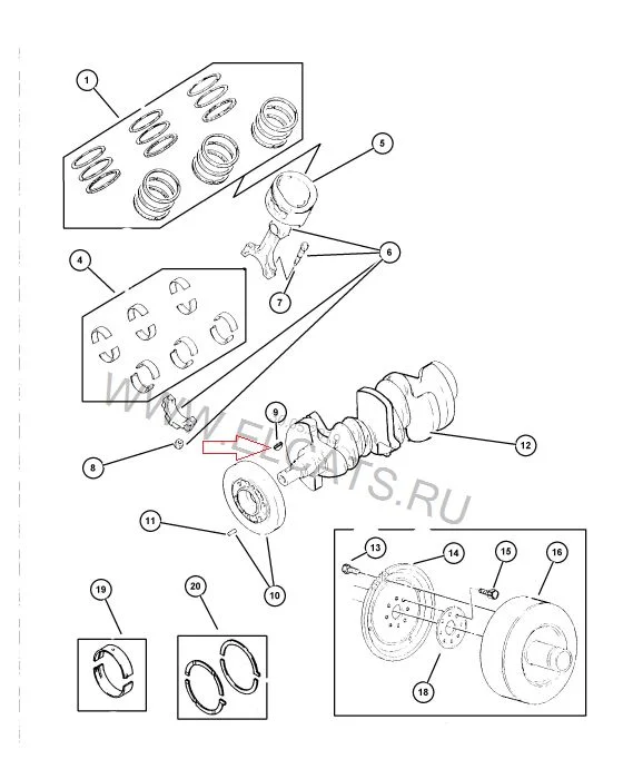 У двигателя литражом 3.0, стоит на колен/валу ШПОНКА (на рисунке из каталога, я пометил её красной стрелкой)