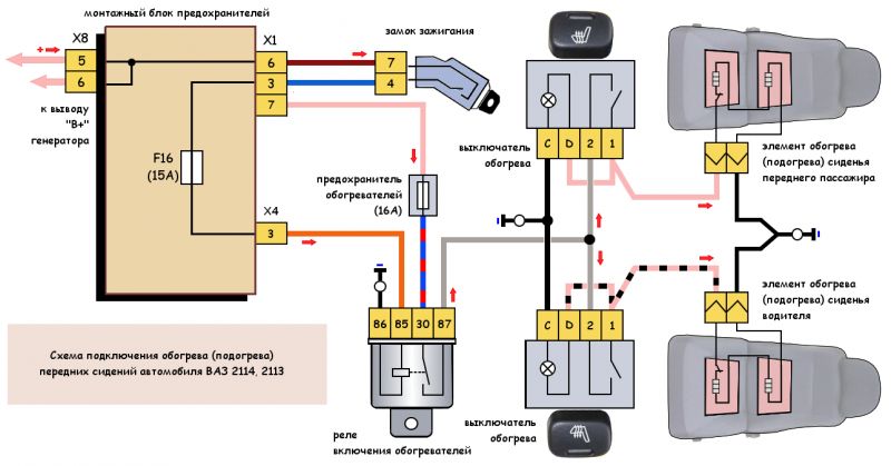 Схема подключения подогрева передних сидений