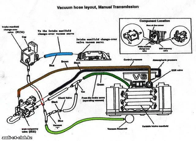 Куда подключены вакуумные шланги в Ауди 100 С4?