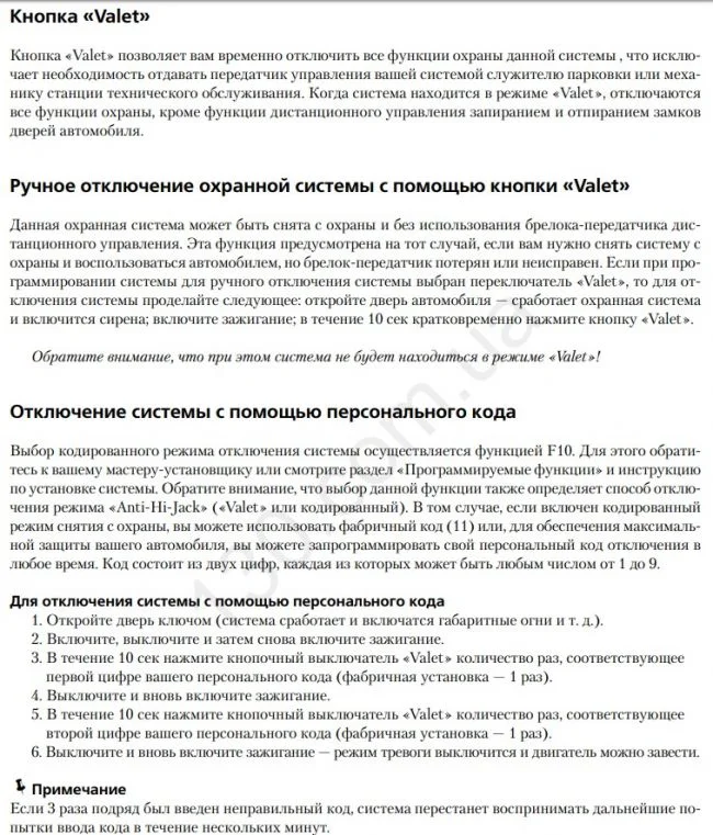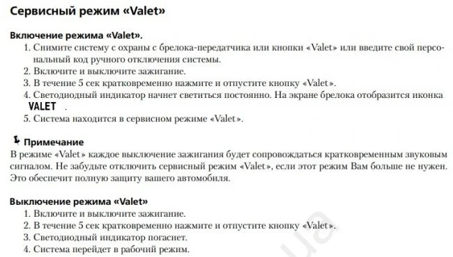 В течение 5 сек кратковременно нажмите и отпустите кнопку «Valet».