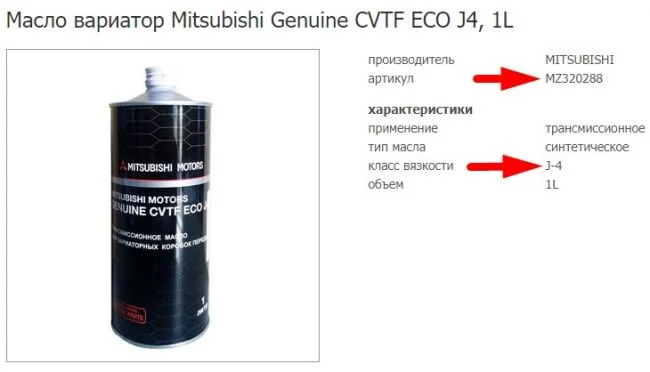 Заливать нужно жидкость Mitsubishi Motors Genuine CVTF-J4 (артикул Mitsubishi MZ 320262 — 4 литра), не стоит экспериментировать, декстрон для акпп не подойдет. Для частичной замены нужно примерно 5-6 литров жидкости.