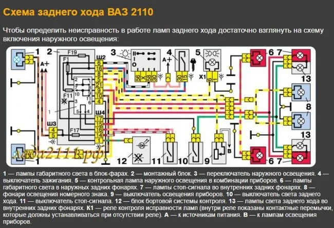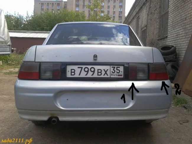 Под номером 1 стоп-сигнал, под номером 2 габарит и задний противотуманный фонарь.