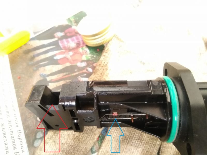 В корпусе ДМРВ находится 2 (два) датчика. Собственно сам датчик массового расхода воздуха (ДМРВ), и датчик температуры впускаемого воздуха (ДТВВ).
