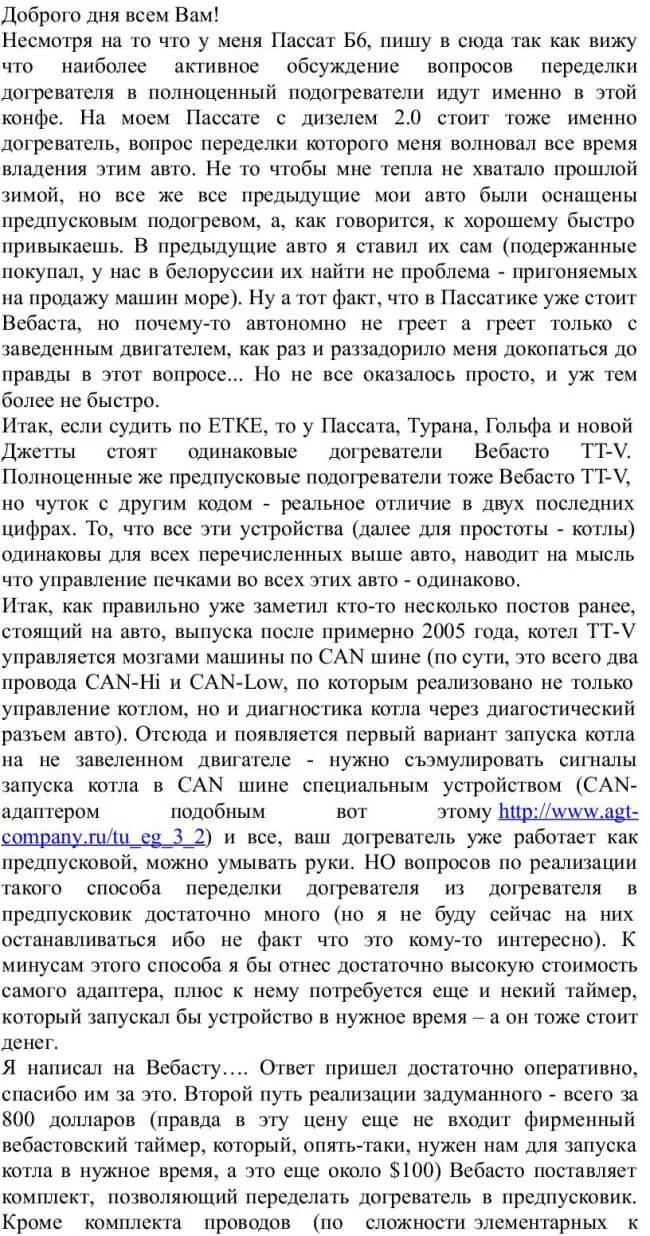 Как сделать, чтобы вебасто вначале прогревало двигатель?