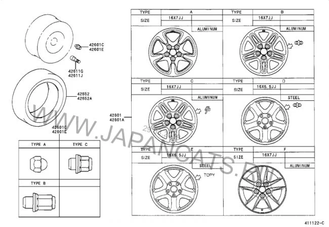 Гайка крепления колеса (закручивается на шпильку) идет двух видов, 90942-01058 (первое фото) и 90942-01021 (второе фото). Ниже схема крепления задней ступицы и колеса, вам шпилька которая на ступице нужна?