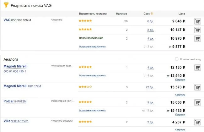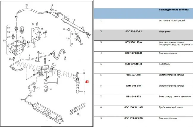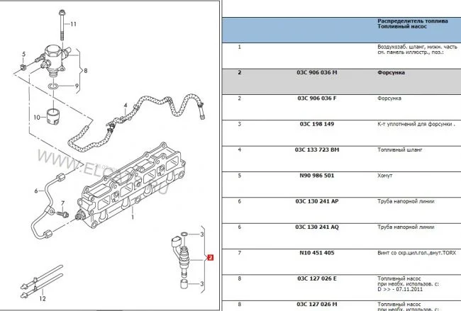 На моем авто стоят форсунки с маркировкой 03C906036М. В магазине купил с маркировкой 03C906036J(сказали, что разницы нет). Визуально форсунка того же вида и размера. Отличается только последней буквой в номере форсунки и на моей нет черного манжета на распылителе после белого пластмассового кольца.