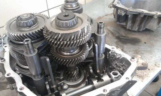 Ниже частично разобранная коробка передач. Видны 3 вала и они не должны двигаться вдоль оси. Крутятся вокруг оси — это да.