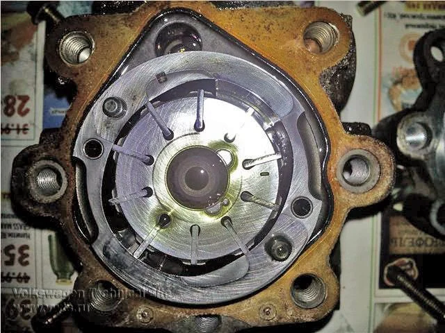 Есть в насосе ротор с лопаточками.Эти лопаточки изнашиваются, и мощность насоса падает, он начинает выть.