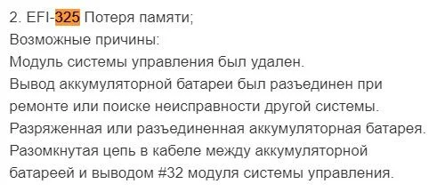 325 — Выход из строя запоминающего устройства. Возможные причины описаны ниже.