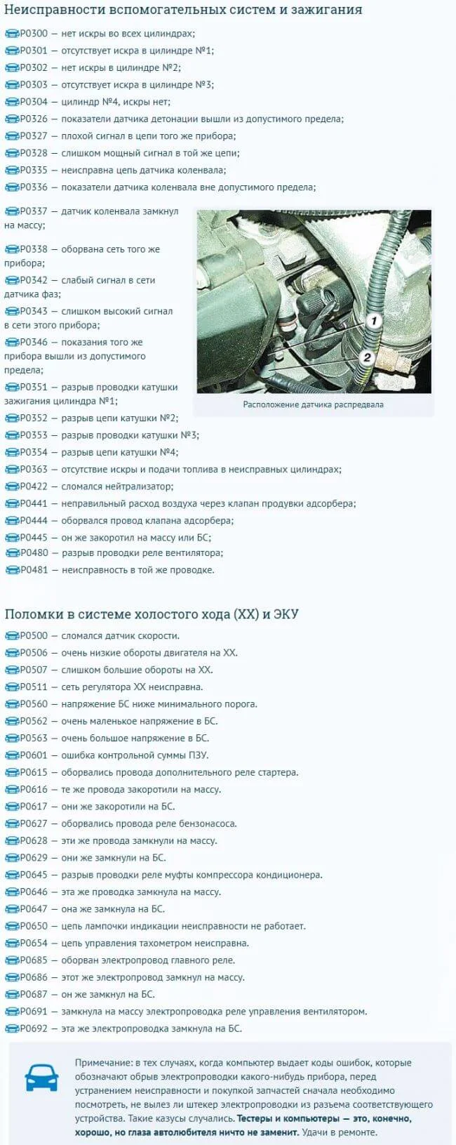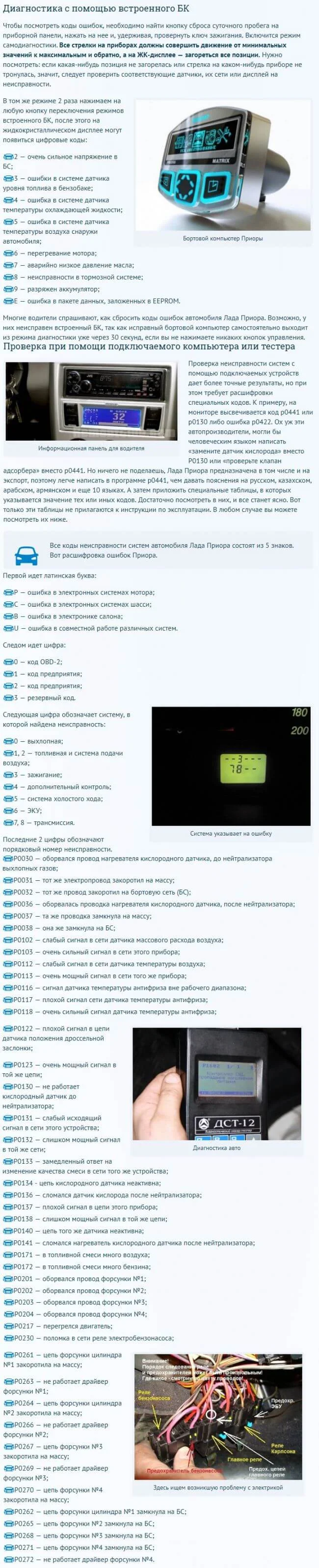 Почитайте, возможно будет интересно. Распространенные коды ошибок Лада Приора