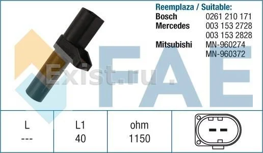 Сопротивление датчика коленвала примерно 1150 Ом.