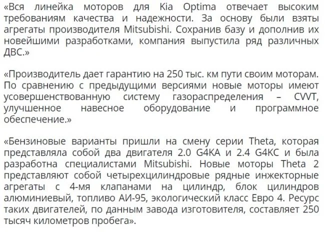 Привожу выдержки из статей про моторы которые устанавливались на «Kia Optima IV»: