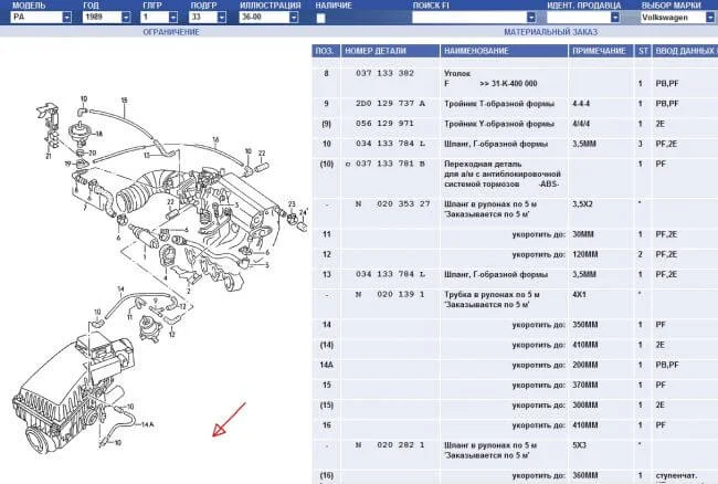 Незадействована вакуумная трубка в Фольксваген Пассат