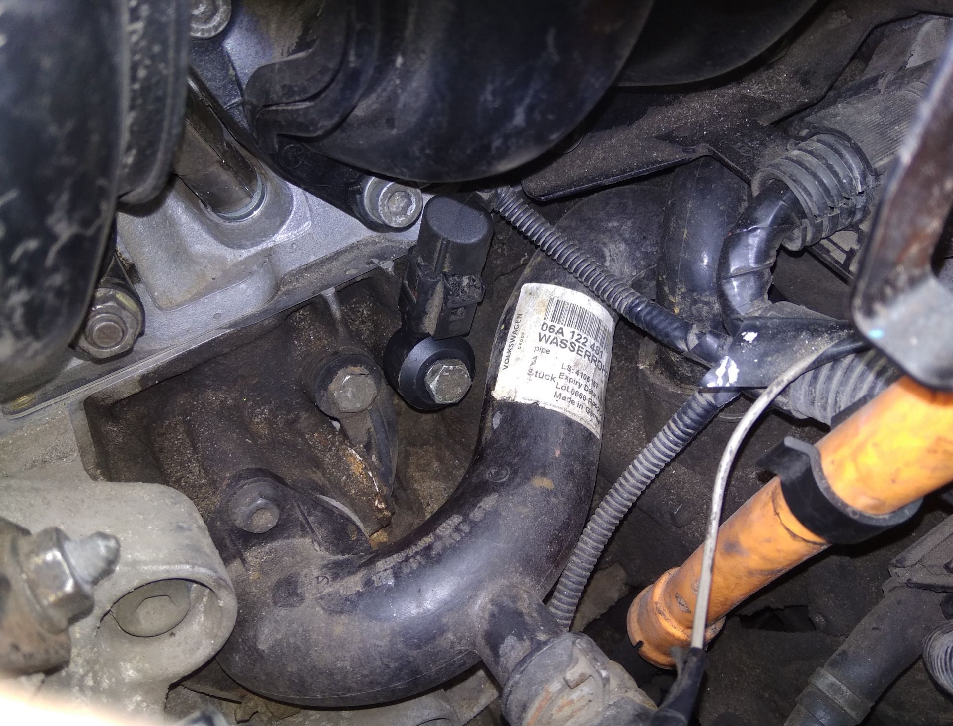 Всем здравствуйте! Подскажите пожалуйста, где крепится датчик детонации на Фольксваген Кадди 2 поколение? Спасибо.