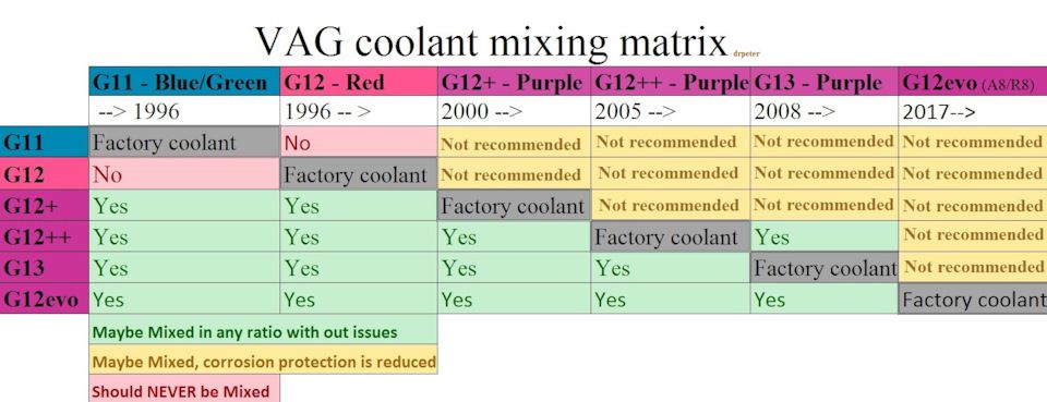 Хочу заменить его на оригинальный антифриз G12 от VAG, но на текущий момент производится только G12 evo (как я понял из чтения разных форумов, он является заменой G13).