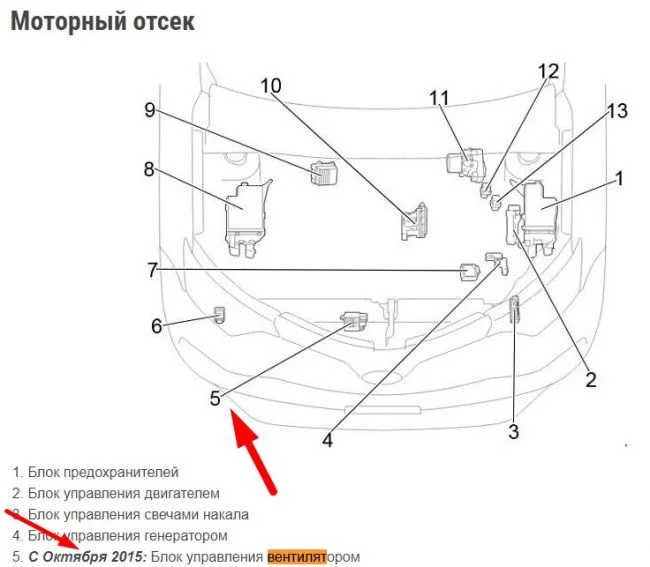 На инжекторных моторах, вентилятор включает Электронный Блок Управления Двигателем.